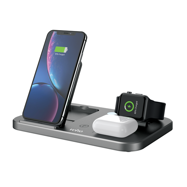The DS-7 Qi wireless multi-charging station can simultaneously charge your three devices including – Smartphone phones, Apple Watch, Airpods plus much more. Widely compatible with: