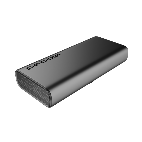 The Pebble PQ22 wireless digital power bank for fast charging compatible devices with dual USB ports, and a wireless charging pad, charges multiple devices with up to 100W output. The Universal USB-C charging port (PD) fast charges most portable devices with up to 20V output (smartphones, tablets, mini notebooks, and laptops). Features intelligent, real-time status that gives you full control with data from both charging ports and remaining power. Designed and finished in a sleek brushed metal casing, for business and travel.